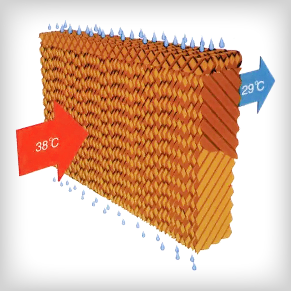 降溫濕簾又稱(chēng)濕簾墻/降溫水簾,通過(guò)和負(fù)壓風(fēng)機(jī)配套使用,實(shí)現(xiàn)廠(chǎng)房通風(fēng)降溫效果。